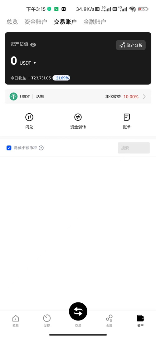在十月份的时候,网络上的工作我赚了一些钱,全部都是用虚拟货币USDT来结算的,都存在欧意平台里面。