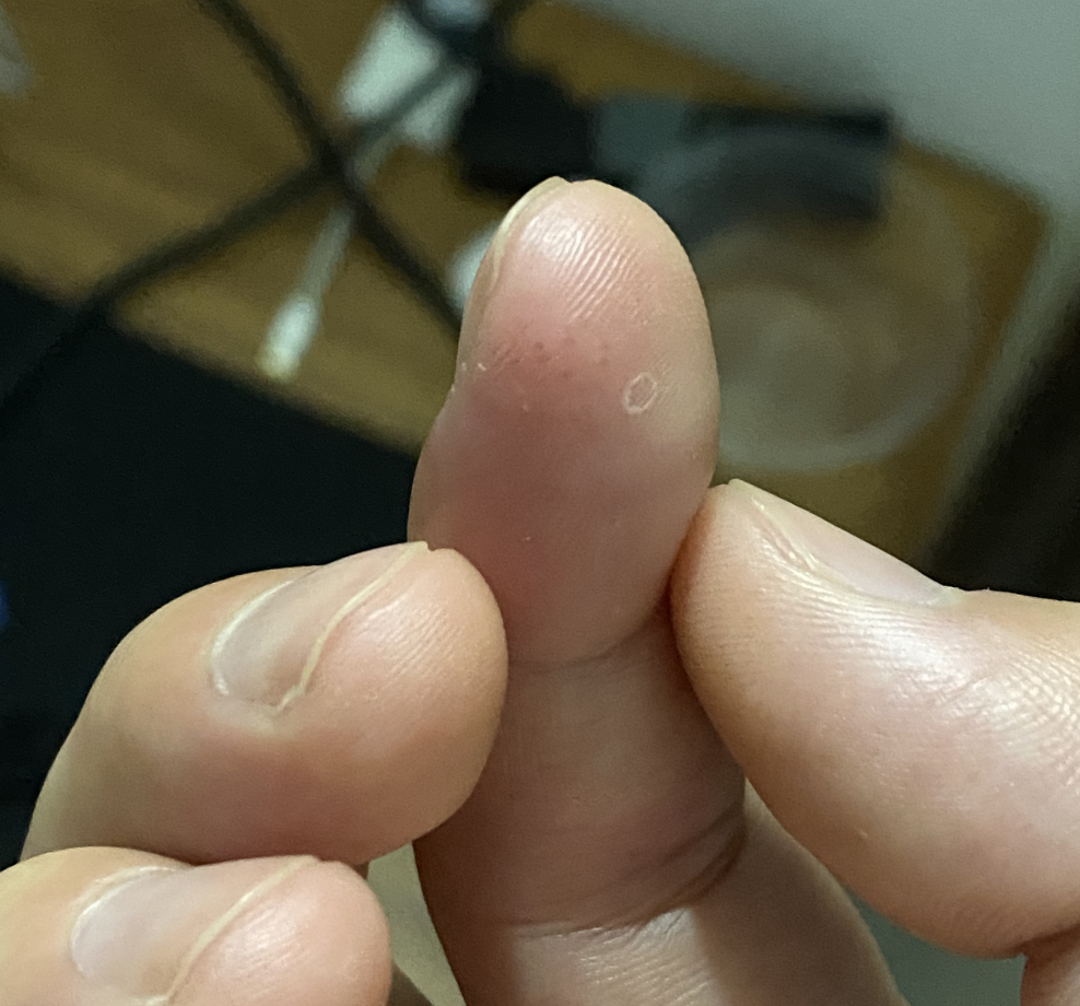 在7月下半旬右手食指似乎被真菌感染,里面长了很多恐怖的小水泡,然后逐渐结痂,肿痛无比,后来去了医院开了药,才慢慢好转。