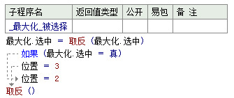 .版本 2 .子程序 _最大化_被选择 最大化.选中 = 取反 (最大化.选中) .如果 (最大化.选中 = 真) 位置 = 3 .否则 位置 = 2 .如果结束