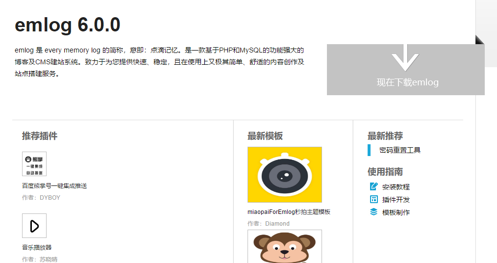 看到emlog已经出了6.0的版本了,也出了百家号的插件,以前需要付费购买的音乐播放器,现在也完全免费了。我的博客一两年来都没有进步,没有改造任何地方,觉得现在他只是一个写作的工具。