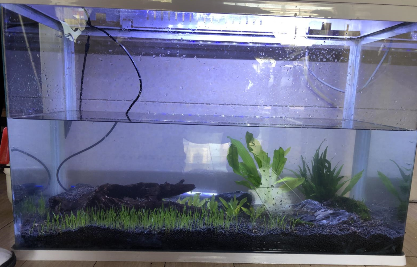 由于目前仅将水草泥放入鱼缸中,刚播种水槽,且并未生长完全,固仅写这么多。