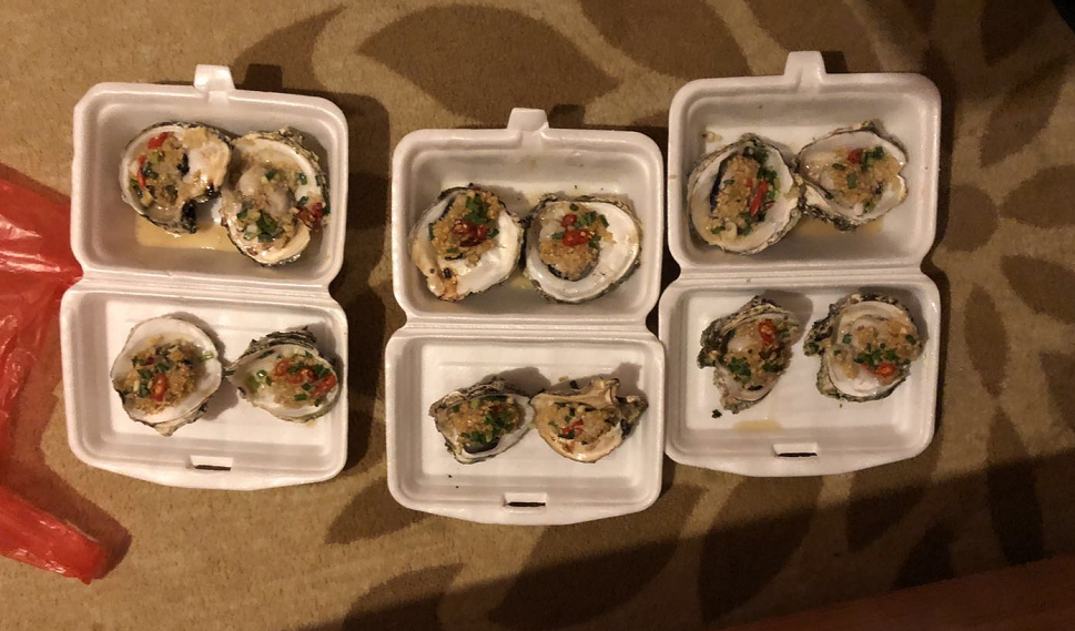 我们俩是个好吃的人,住酒店还点了一下烧烤。这里的生蚝很便宜,我们点了12个生蚝,还有别的一些烧烤,一共才110元。