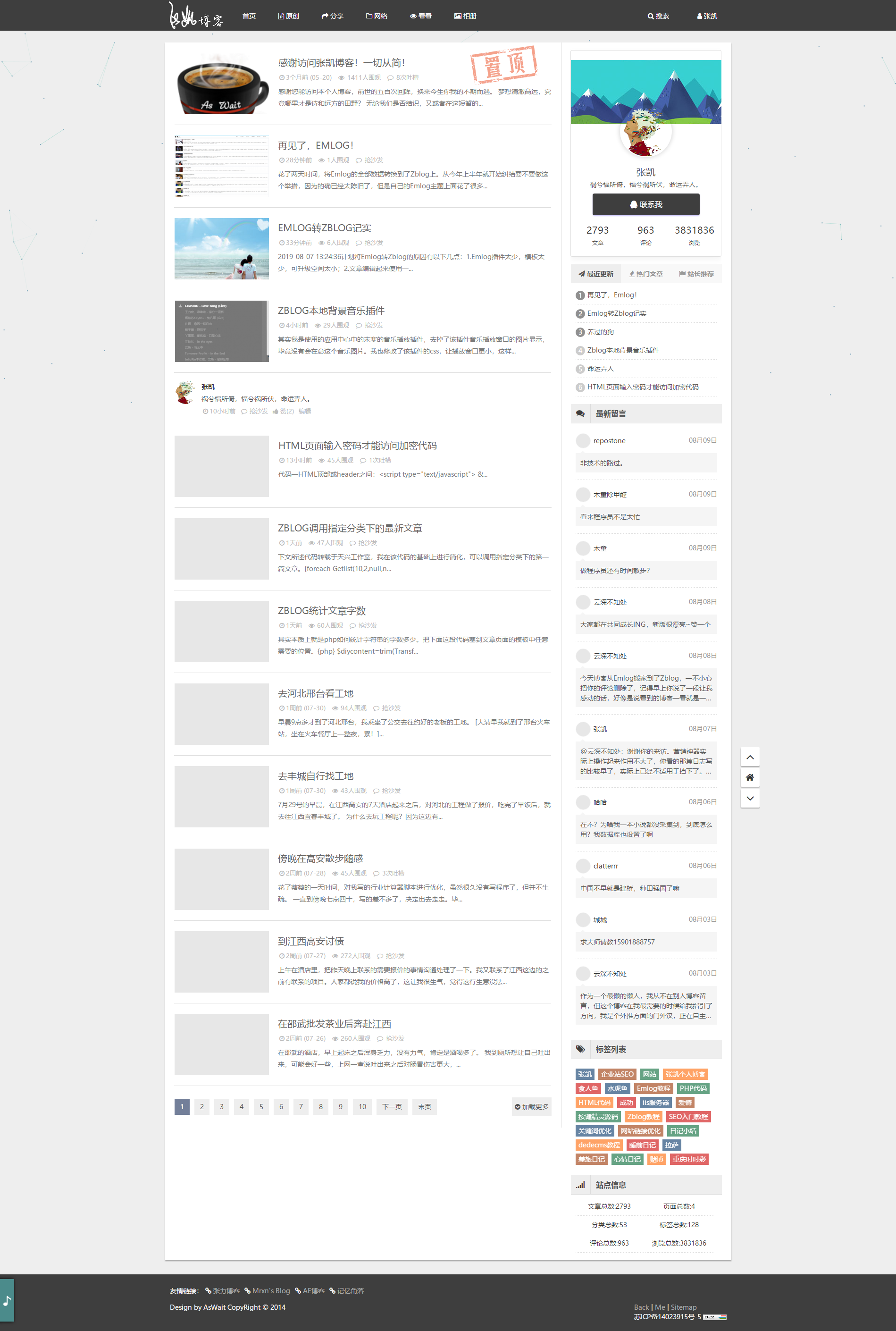 随后又做标签云、读者墙、日志归档等几个单页,这几个单页非常美观大气,比我自己在Emlog模板里面写的单页好看多了。使用别人的模板,大量的减少了我自己去写代码的时间。