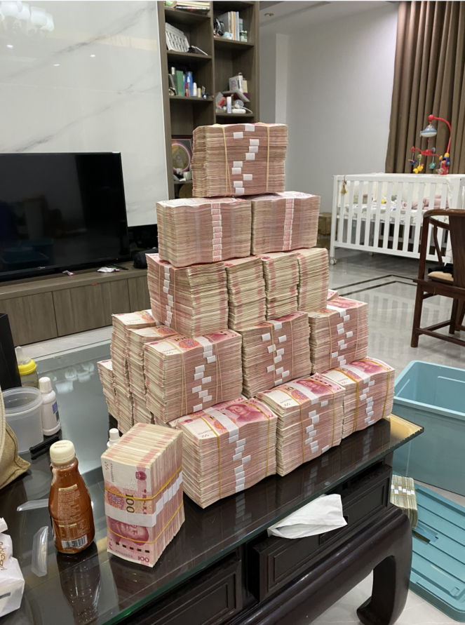 我把钱堆起来让女儿躺在钱上,我给她拍照片。其实,努力奋斗是为了让孩子们有更好的生活。