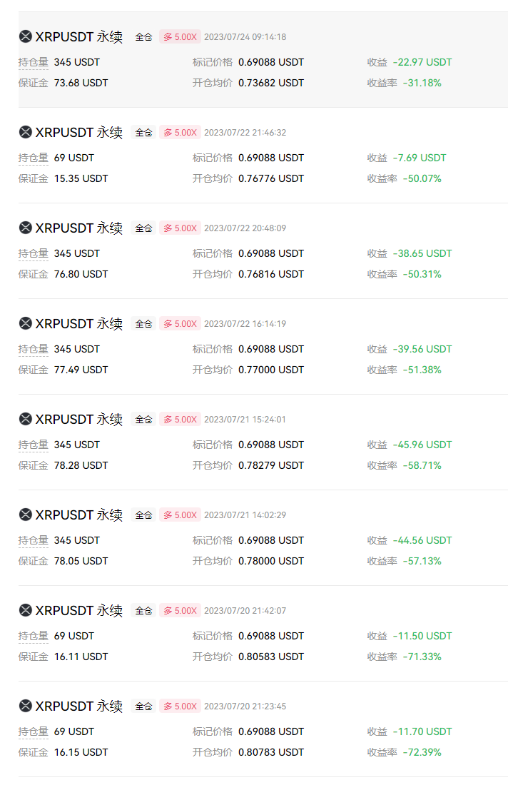 又是一天,没想到短短5分钟亏掉了我3000u,我TM真是心态崩了,取消了所有的跟单。后来经过研究发现,有些跟单的人很恶心,他下单过程中,赚钱的但全部卖掉,产生盈利,却把亏钱的单全部保留,这就导致看上去我是盈利的,实际上不停的在产生亏损。