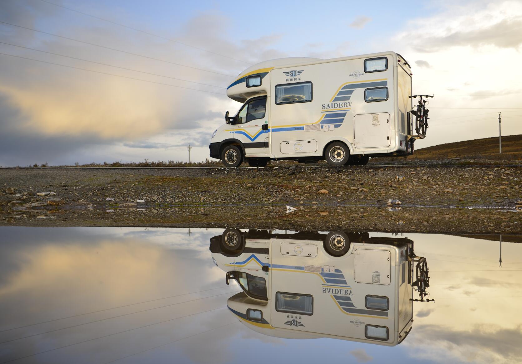 先说说房车的用车体验吧,说说那些美好的回忆。我在房车后面装了一个自行车架,背着我心爱的自行车走南闯北,真的很帅。但实际上,我使用自行车的机会与频率真的是越来越少了。尤其是这两年,我几乎没有使用自行车,根本就没有时间。自己开车的时候用不上自行车,根本没办法骑;自己不开车的时候,那就是有别人在开车,但似乎也没骑上自行车。这两年自己变得越来越忙碌了,并不是说不喜欢自行车了,也不是说不想去锻炼了,而是……唉,就当给自己找借口吧,真的没空骑自行车了。其实,房车后面背一个自行车,真的是解决了最后1公里的焦虑。