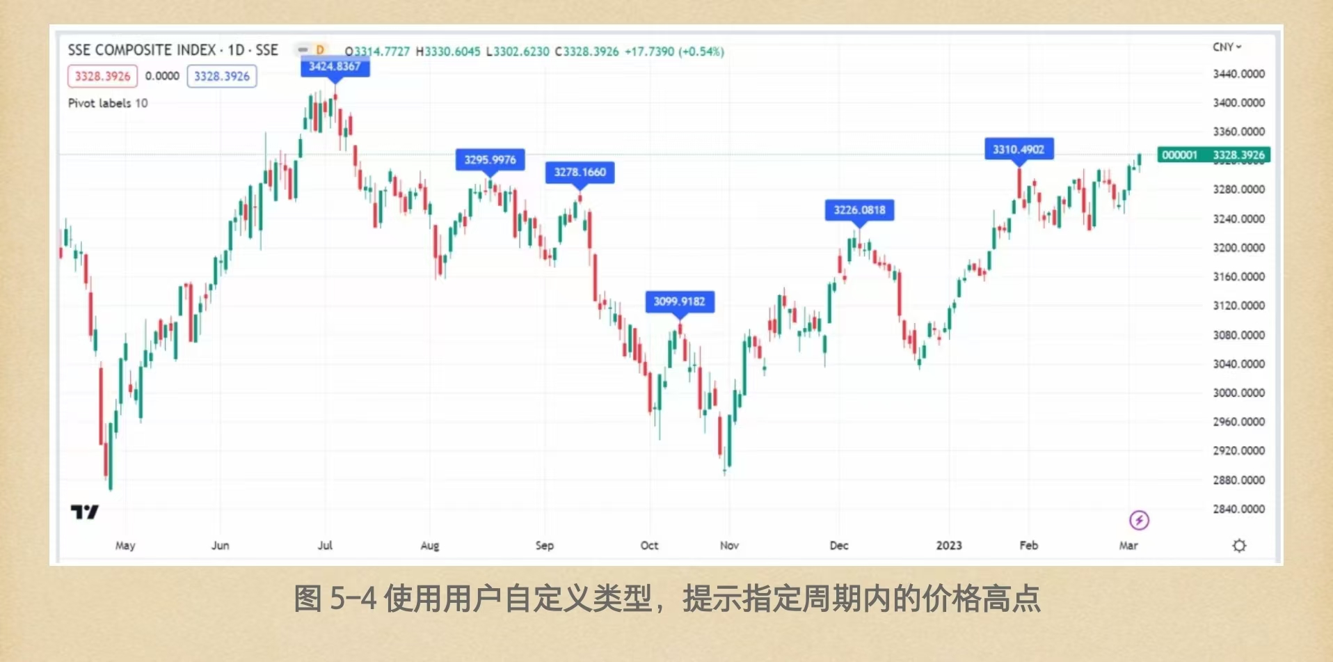 // 发现新的 pivot 高点,并通过标签显示周期内出现的高点的值