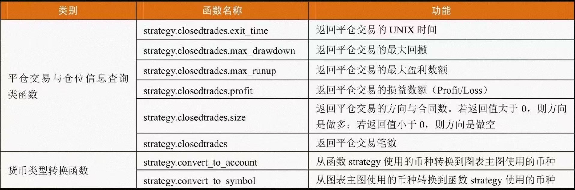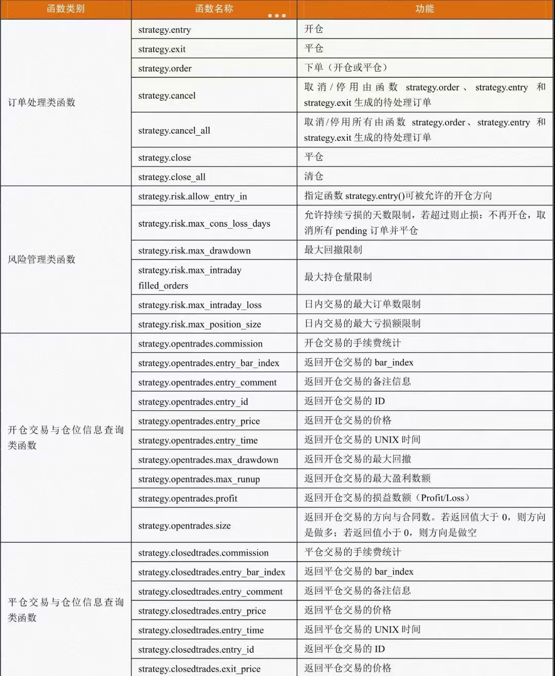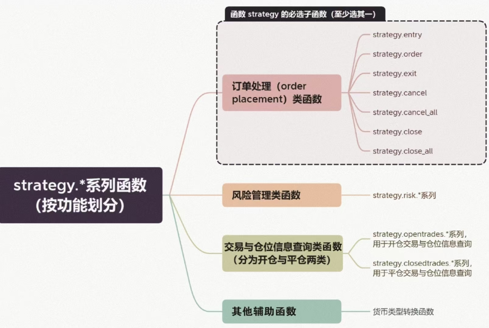 TradingView的strategy.*系列函数主要分为四大类功能: