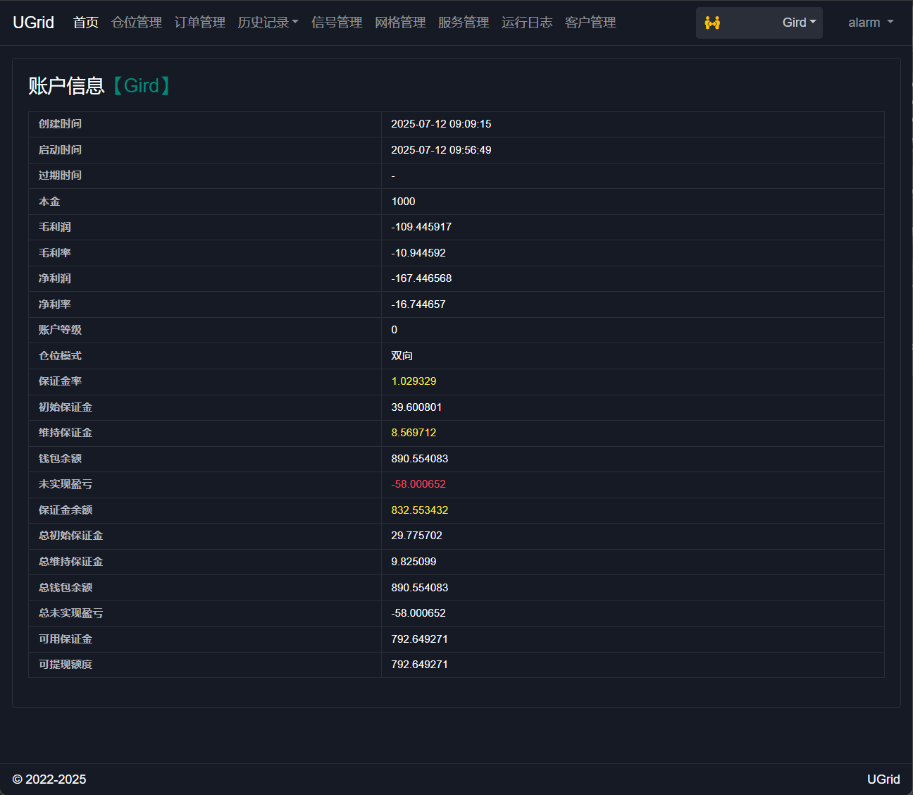 但事实上,他口中所描述的“更加稳健”的账户表现一直不佳。第一天就亏损了100U,我果断停掉了该币种。之后花了好几天才把这100U挣回来。万万没想到的是,在7月11号当天,市场出现了趋势性波动,账户在一天之内回撤了20%。5000U的账户,在那一天就损失了1000U。
