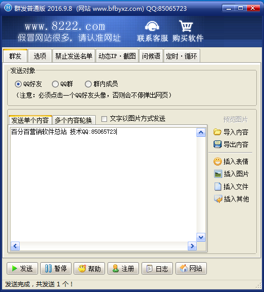 群发的消息中可自动添加对方昵称以及QQ表情,增加亲切感;