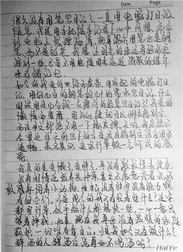 头一次用这样的方式发布一篇日记,如果说电脑保存是为了让记忆不会流失,那么手写就是为了通过字的书写形式表达记忆中那段时光的情绪。
