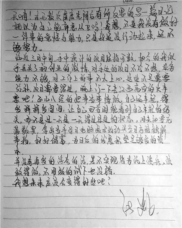 很不错的方式,很久没有用笔在纸上写过长篇文字了,很多常见字都已经不会写了,要想很久才想起来。博主的字写得很潇洒哈,就是行距太近了,有点密集恐惧症哈哈。