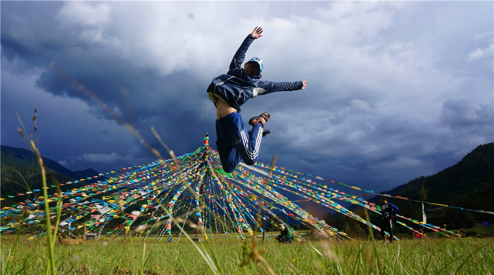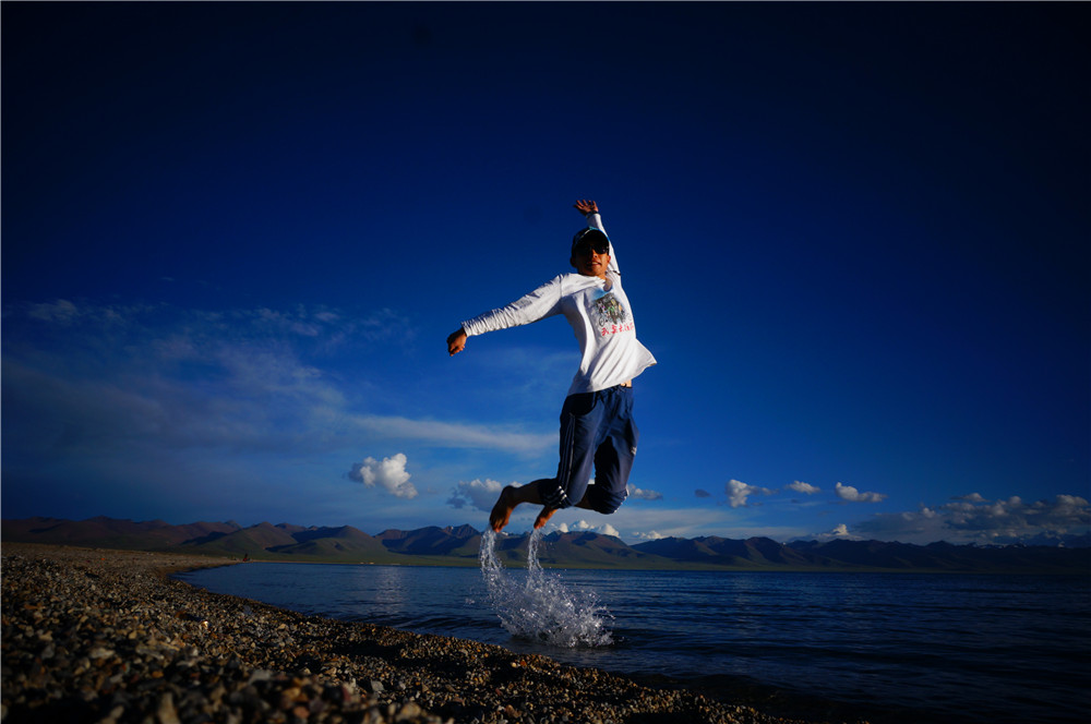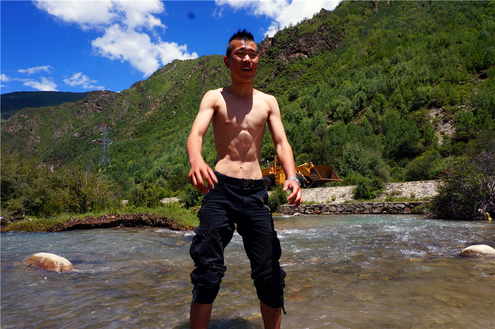a.我为松哥拍的背影:儒雅的帅哥一深一浅小心翼翼的踱过清澈而湍急河流,别样的气质~