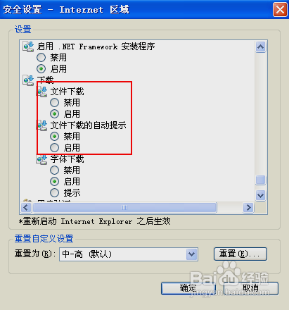 在Internet选项--安全--自定义级别--文件下载选择启用