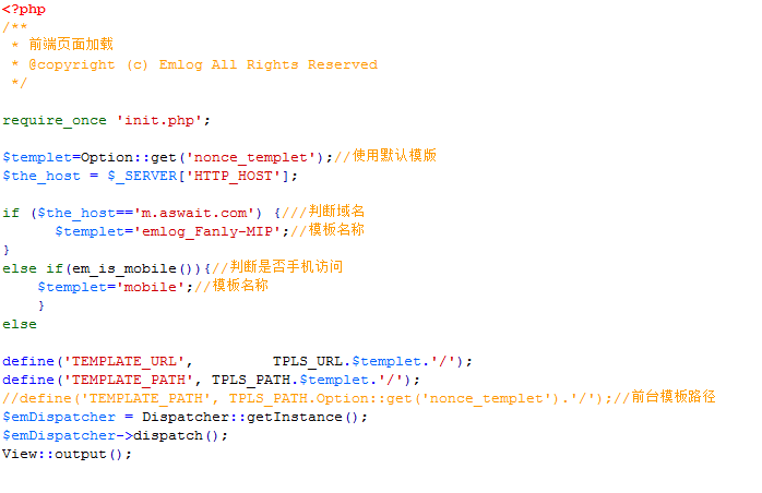 我在AE博客(www.aeink.com)中看到Emlog通过不同域名使用不同模板的方法,但是没有实现手机访问时使用手机模板,本文对原文博客代码实现了增补手机访问实现模版切换的功能。