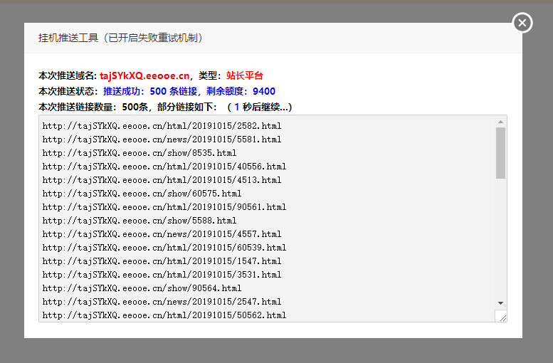6.多的不说了,这个工具就是适合当泛站群添加后推送的神器,自动添加1000个子站点为止!