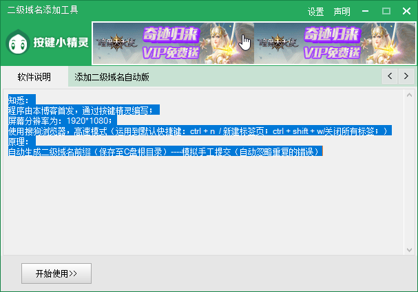 该版本的百度站长批量添加子站工具同样是使用按键精灵编写,下文源码作为未优化前的版本,如懂按键精灵的朋友,仅供调试使用;