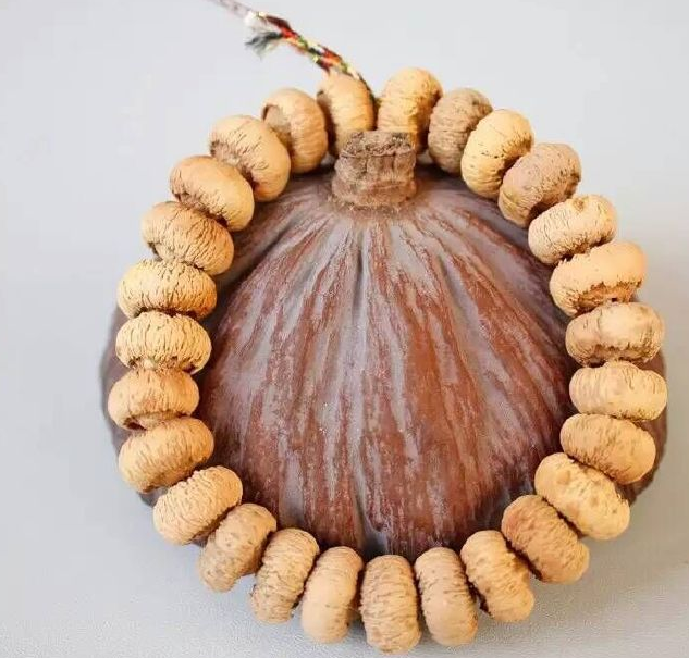 为了避免莲花菩提籽与籽之间的磕碰,应把线串的松一些,而且盘的时候不要太用力,以免断齿。当然,莲花和金刚菩提一样,可以适当的用鬃毛刷盘刷。这样边盘边刷,随着是按的变化,菩提会逐渐上色包浆,呈现微红,包浆也会越来越润。