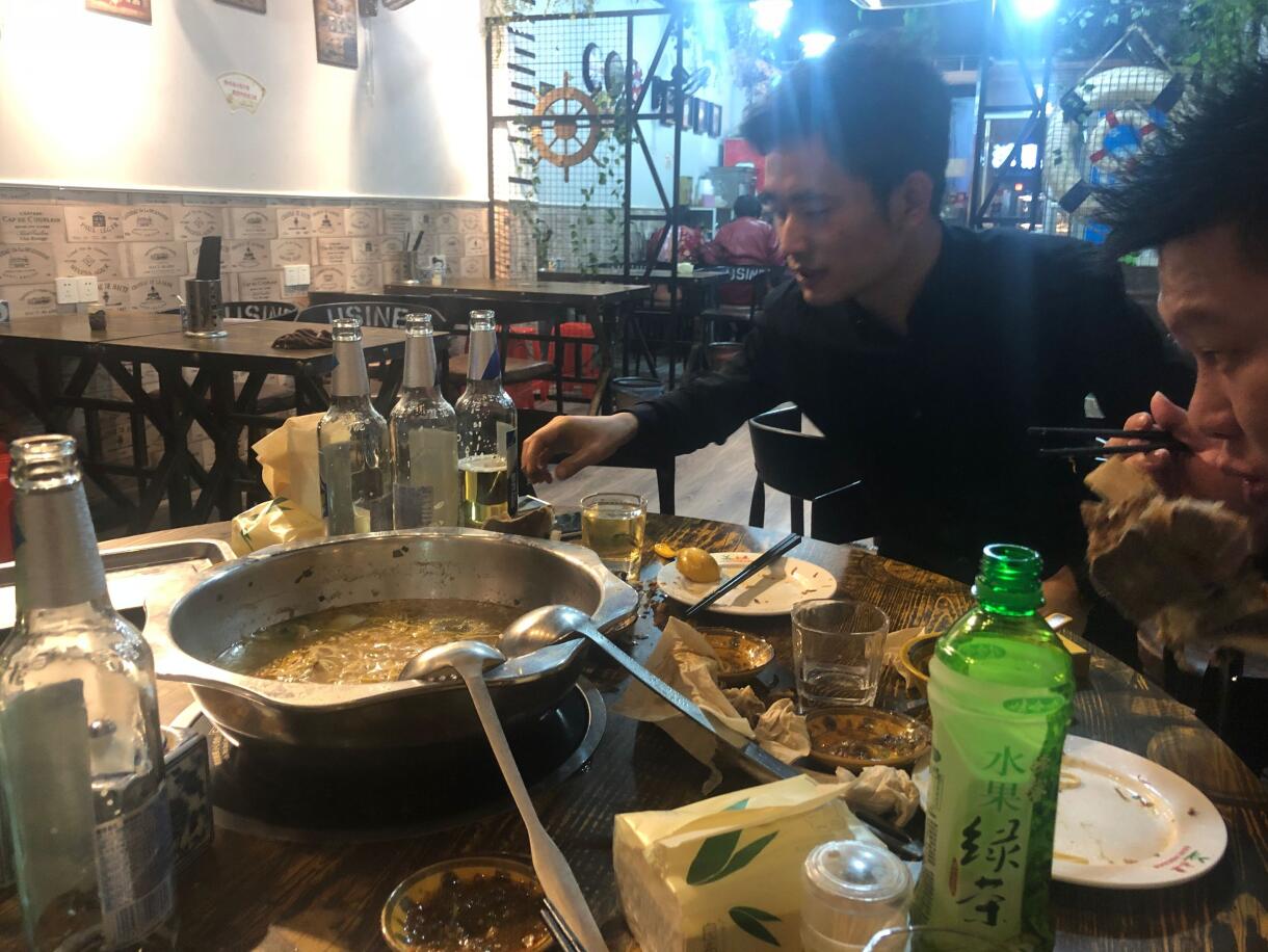 到宜昌东站之后打车去工地,晚上和工人一起吃晚饭,喝了酒。