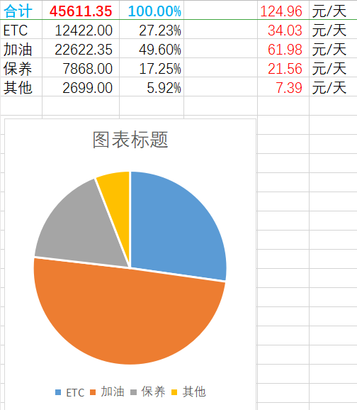 (2)加油:22622元;(49.6%;61.98元/天)