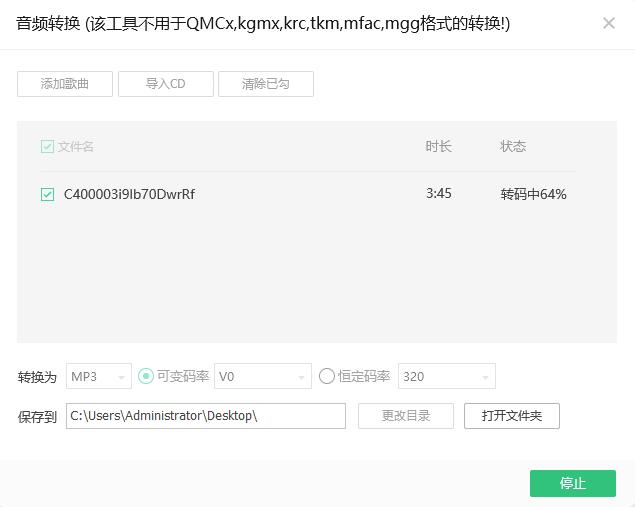 9.转换完成的音乐为MP3格式,如果可以播放,则一切大功告成。