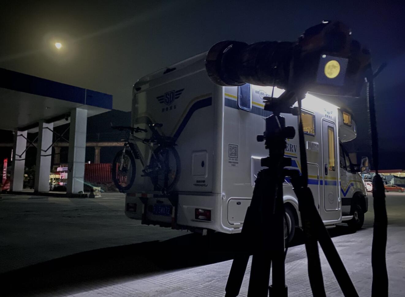 9月21日,这一天是中秋,当晚我们开到了四川达州。在不到达州100公里的地方租车了,当晚在服务区里面吃了晚饭,第1次在服务区里面吃这么丰盛的自助餐,可能是因为中秋吧,高速上没有什么人,服务区里面的自助餐也没有人吃。吃完了晚饭,我在服务区拍摄了月亮,并煮了红茶来喝,且当做欢度中秋。