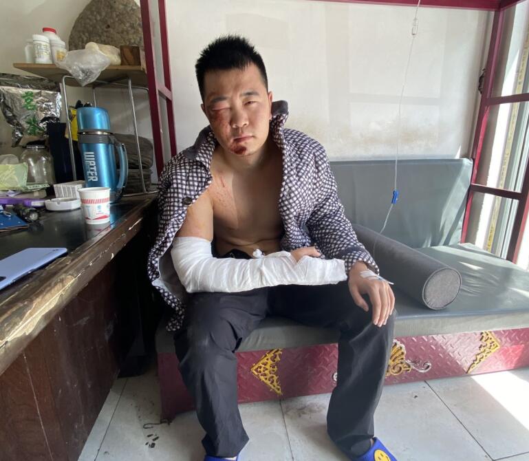 当我从车上摔下来的时候,嘴里还在吐血,是因为舌头已经破了一块。我可以感受到自己的脸上、胳膊上、背后到处都在流血。当我从车上摔下的时候,我的脑子是懵的,什么都记不得了,我什么也没拿,颤颤巍巍的回到了房车里。我一个人走到房车里,不知道过了多久,我努力回忆着最近发生的事情,却什么也想不起来,在房车里,我在第一时间让朋友给我拍了照,保留了我凄惨的模样。