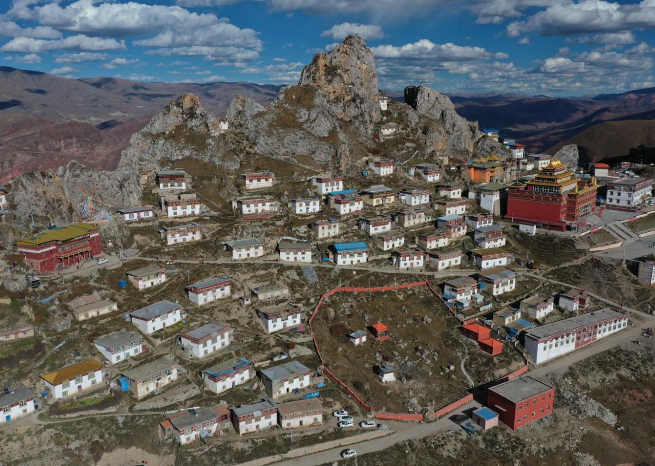 徒步参观完孜珠寺之后,我还有无人机拍摄了该寺庙以及其附近建筑的全景。现在回头看当时拍摄的照片,看到这些建筑屹立于上峰上,在感叹大自然鬼斧神工造化出这么雄浑壮阔的高山的同时,也感叹于藏族人民过去的那些寺庙建设者的不易,于我而言,别说是负重前行了,就是普通的上下山坡行走,也是有些吃力的。