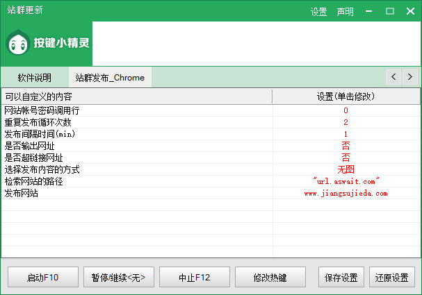 这个用按键精灵写的站群更新软件(也可以说是小脚本)应该早就发布出来了,早在2018年6月中旬完成编写,并在7月15日经过放在服务器里的长期调试,形成最终版本。现在才把它发布出来,究其原因只不过是我太忙了忘记发了。